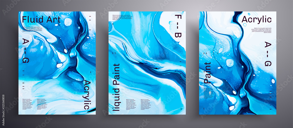 Abstract Vector Placard Set Of Modern Design Fluid Art Covers Artistic Background That Can Be Used For Design Cover Invitation Flyer And Etc Blue And White Universal Trendy Painting Backdrop Stock Vector